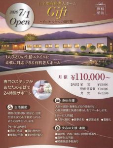 施設名の由来といたしまして、入居される方々にとって、Giftでの生活がたった一つのかけがえのない贈り物となるようにと、スタッフ一同の想いを込めております。